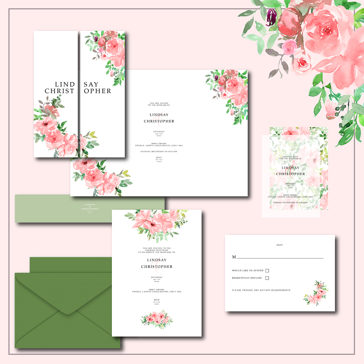 Printed on a 280 gsm Nettuno card, it has a subtle textured finish where you can really feel the quality. Why not have something different and have a gate-fold invitation design or print on vellum and team it with a floral background? The design options are endless!